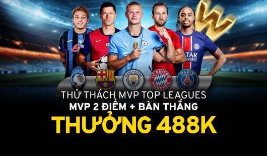 - We88 trao thưởng lên đến 488K VND khi bạn đặt cược vào MVP của 5 giải đấu thể thao lớn tại sảnh CMD – một cách hay để theo sát các ngôi sao sân cỏ và nhận thưởng.